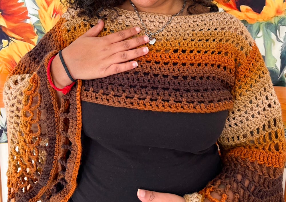 Brown ombré shrug. 🤎Made with acrylic yarn. The measurements are U.S. Women’s sizes.