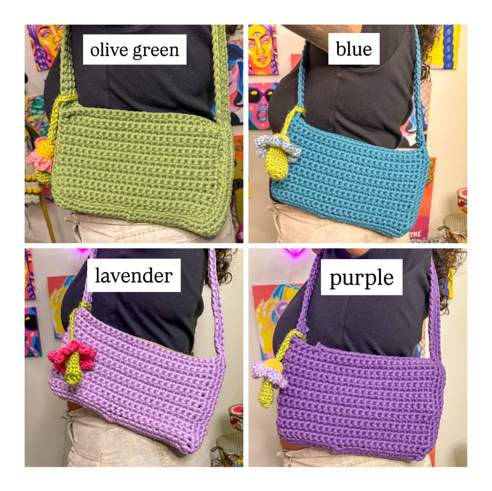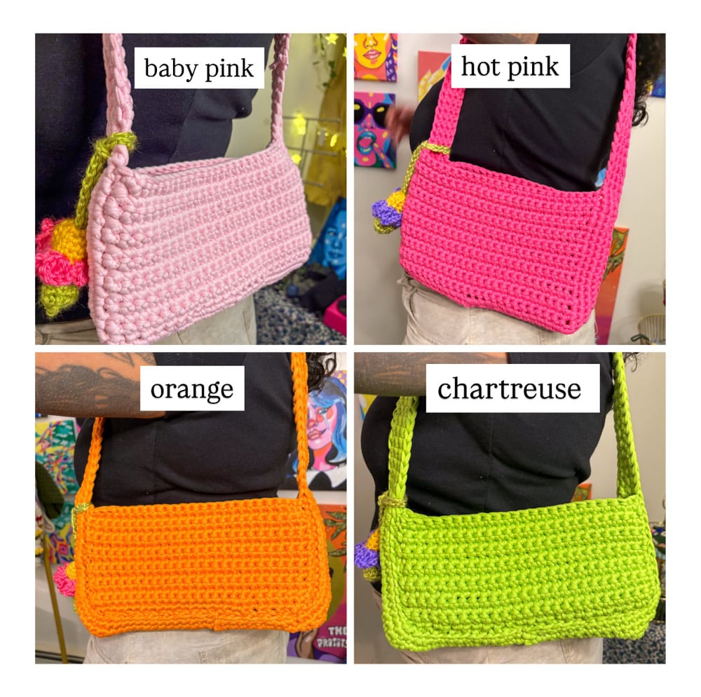 These t-shirt yarn bags are about 7 inches by 10 inches in in size. The strap is about 13 inches long. Each bag comes with a free detachable lip balm holder.